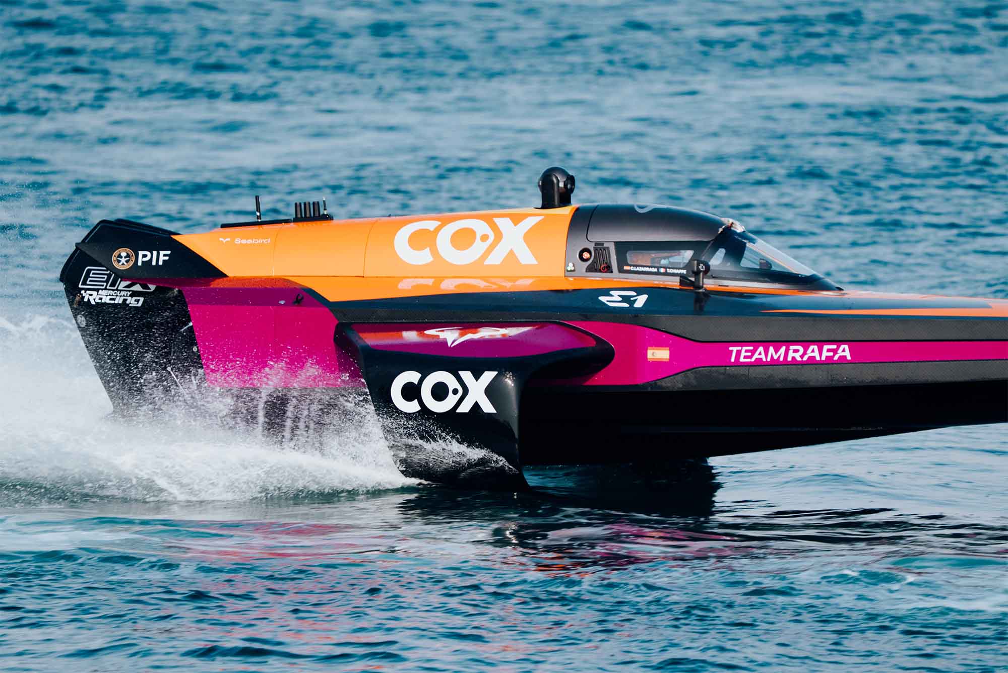 Rafa Nadal is one of the celebrities who sponsors the E1 Series, boats that can exceed 90 kilometers per hour and that, due to their design, are a challenge for pilots who are new to them.